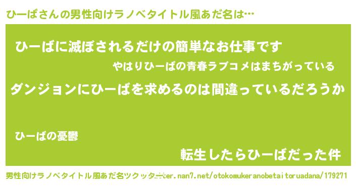 | 女子向けラノベタイトル風あだ名 | 『ひーばは平凡を望む』 |