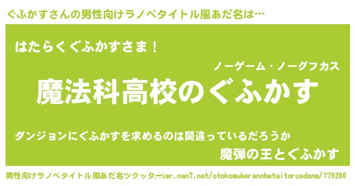| 意味不明あだ名 | 『自称ぐふかす』『永久保存ぐふかす』 |