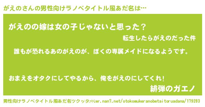 | 胡散臭い通販商品みたいなあだ名 | 『前代未聞の健康食品…その名も「がえの」』 |