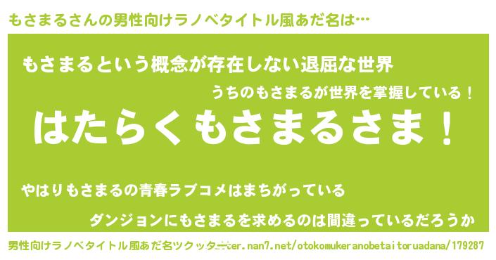 | ヘコむあだ名 | 『もさまる(小並感)』『もさを』 |