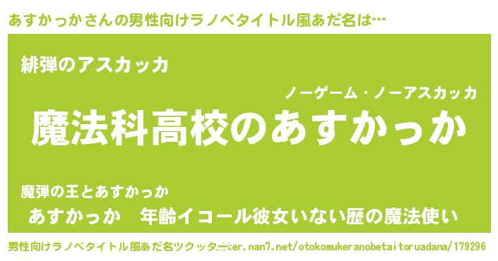 | 女子向けラノベタイトル風あだ名 | 『あすかっかなんてお断りですっ。』 |