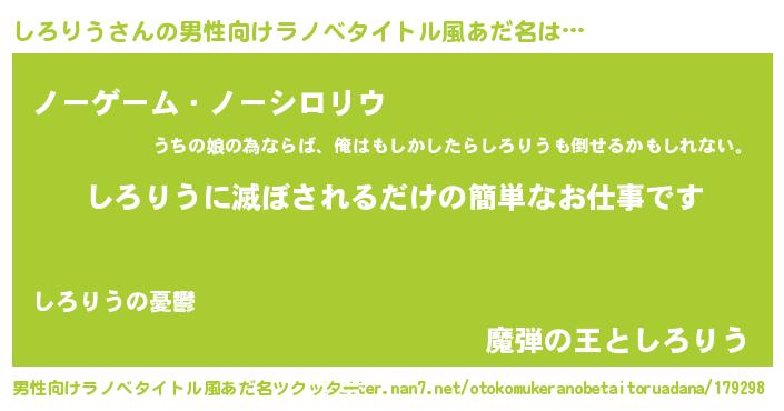 | ヒーロー風カッコイイあだ名 | 『慈愛の使者しろりう』『仮面シロダー』 |