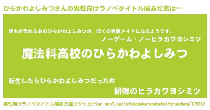 | ヒーロー風カッコイイあだ名 | 『ウルトラ戦士ヒラカワヨシミツ』 |