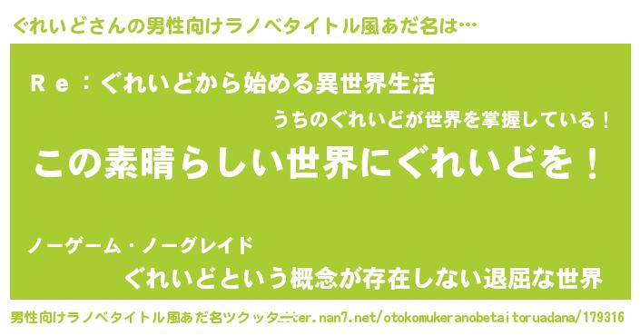 | ヘコむあだ名 | 『ぐれいど(小並感)』『ぐれっ子』 |