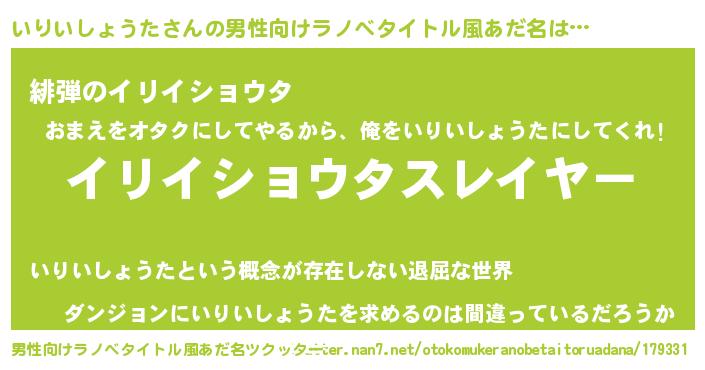 | 胡散臭い通販商品みたいなあだ名 | 『信頼と実績のサプリメント…その名も「いりいしょうた」』 |