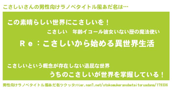 | 女子向けラノベタイトル風あだ名 | 『こさしいストレイドッグス』 |