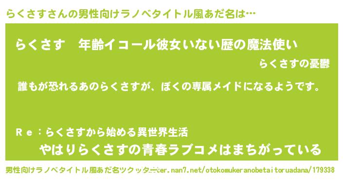 らくさすさんの男性向けラノベタイトル風あだ名をツクッター!