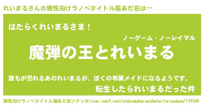 | 女子向けラノベタイトル風あだ名 | 『れいまるが死なない童話 林檎のれいまるの診療簿』 |