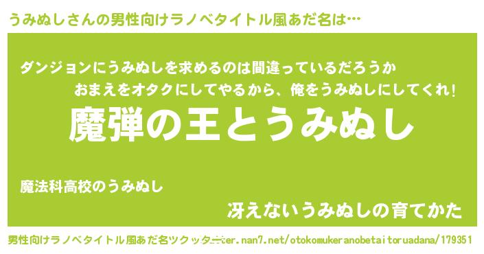 | 意味不明あだ名 | 『住所不定無職うみぬし(53歳)』 |