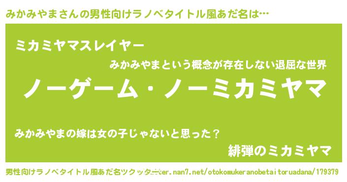 | ヒーロー風カッコイイあだ名 | 『慈愛の使者みかみやま』『暗黒騎士ミカ』 |