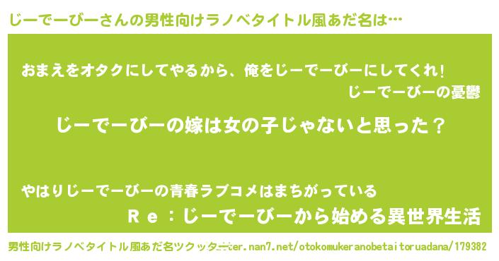 | 女子向けラノベタイトル風あだ名 | 『じーでーびー様がみてる』 |