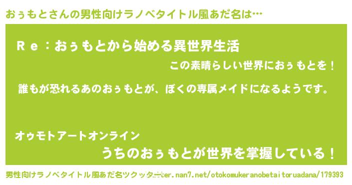 | ヒーロー風カッコイイあだ名 | 『ネオオゥモト』『最強戦士オゥモト』 |