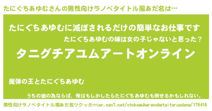 | 胡散臭い通販商品みたいなあだ名 | 『モテモテ間違いなし水晶球…その名も「たにぐちあゆむ」』 |
