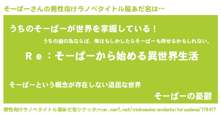 | 女子向けラノベタイトル風あだ名 | 『そーぱーストレイドッグス』 |