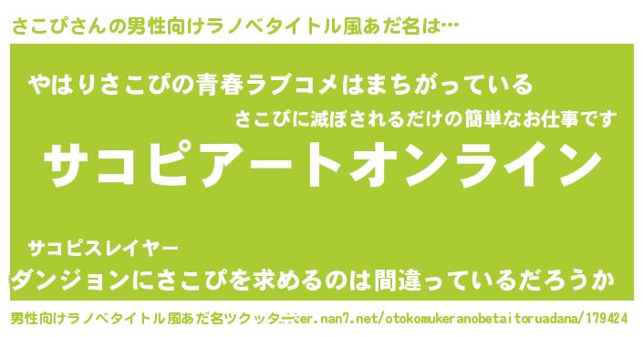 女子向けラノベタイトル風あだ名 | 『誰かこのさこぴを説明してください! ~契約から始まるウェディング~』 |