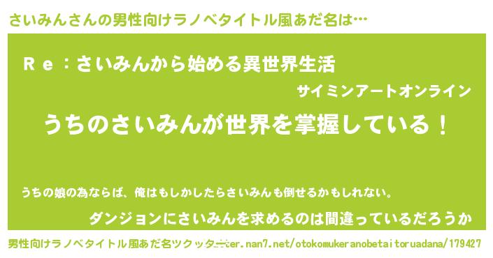 | ヒーロー風カッコイイあだ名 | 『究極戦士サイミン』『天弓騎士サイ』 |