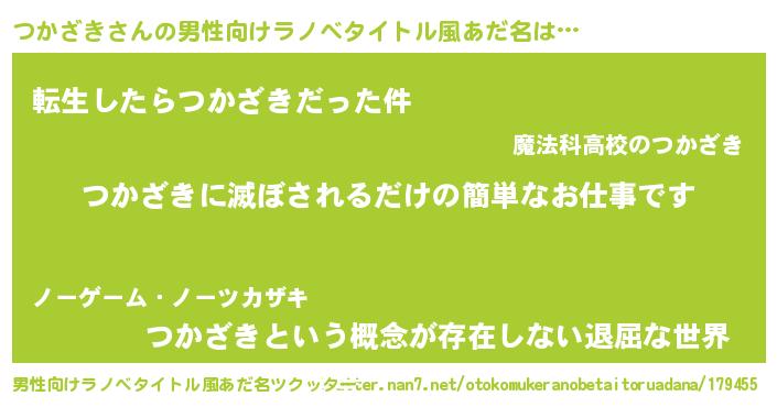 | 胡散臭い通販商品みたいなあだ名 | 『来世でも幸せになれる健康食品…その名も「つかざき」』 |