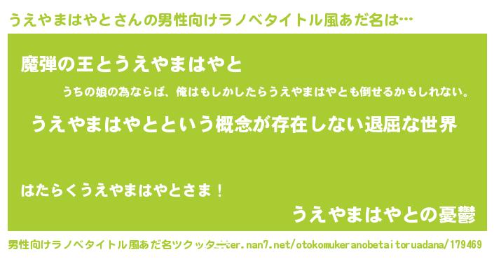 | 女子向けラノベタイトル風あだ名 | 『異世界で失敗しない100のうえやまはやと』 |