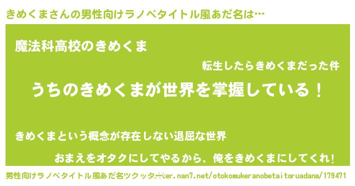 | ヒーロー風カッコイイあだ名 | 『最強戦士キメクマ』『愛の使者きめくま』 |
