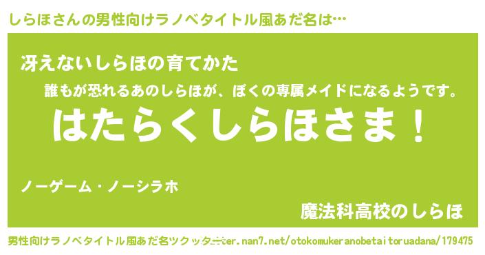 | 意味不明あだ名 | 『自称しらほ』『永久保存しらほ』 |
