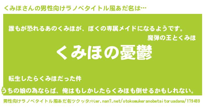 | ファンタジー風あだ名 | 『クミフェル』『クミディッシュ』 |