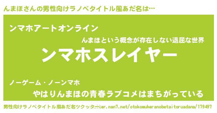 | 胡散臭い通販商品みたいなあだ名 | 『必ず成功する霊験あらたかなお札…その名も「んまほ」』 |