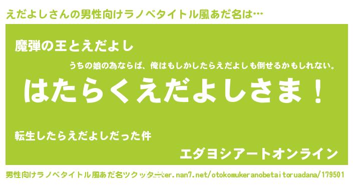 | ヒーロー風カッコイイあだ名 | 『仮面エダダー』『スーパーエダヨシ』 |