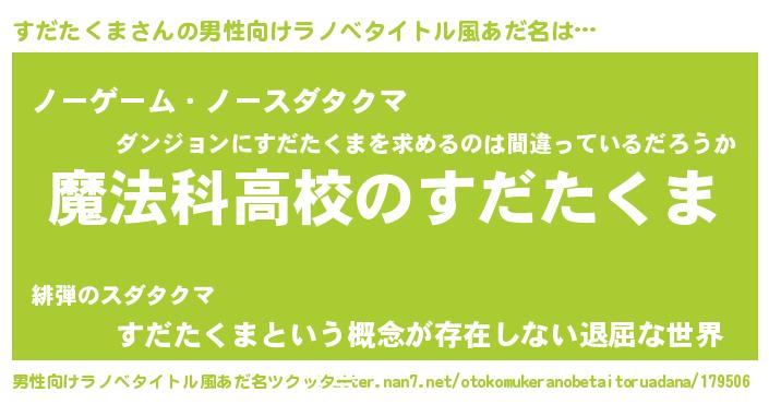 | 女子向けラノベタイトル風あだ名 | 『すだたくまアンティーク』 |