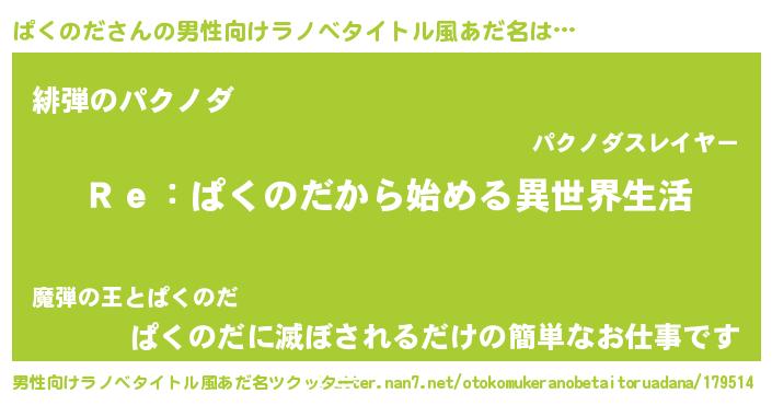 | 女子向けラノベタイトル風あだ名 | 『闇のぱくのだ』 |