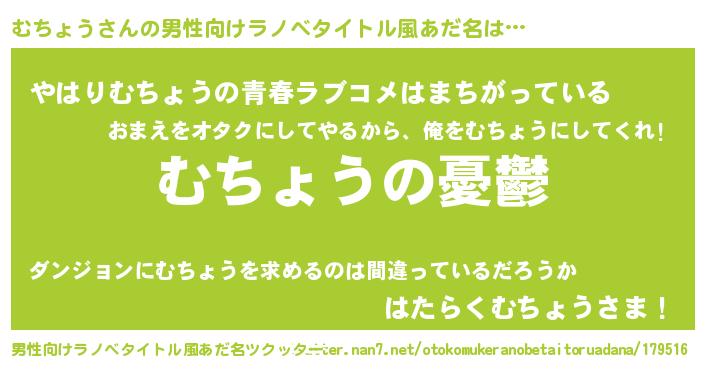 | 女子向けラノベタイトル風あだ名 | 『むちょう姫と円卓の騎士』 |