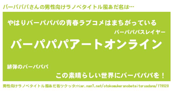 | 胡散臭い通販商品みたいなあだ名 | 『億万長者になれる霊験あらたかなお札…その名も「バーパパパ」』 |