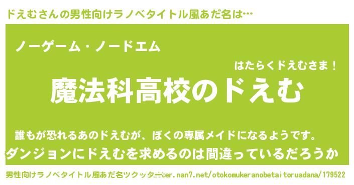 | ヒーロー風カッコイイあだ名 | 『超時空戦士ドエム』『天空の使者ドえむ』 |