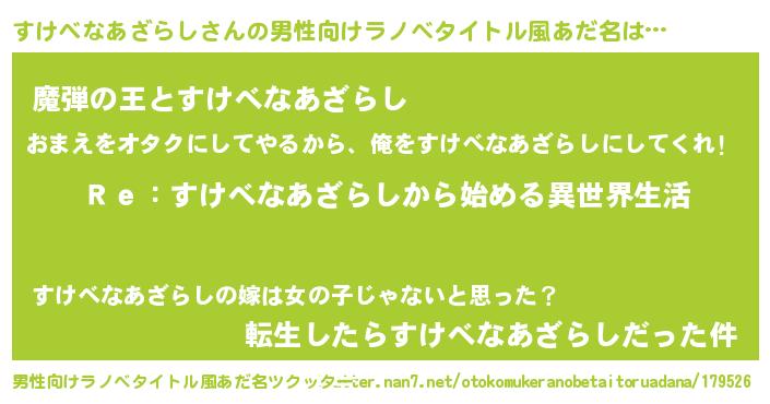 | 女子向けラノベタイトル風あだ名 | 『すけべなあざらしストレイドッグス』 |