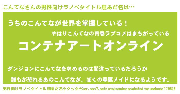 | 胡散臭い通販商品みたいなあだ名 | 『億万長者になれるブレスレット…その名も「こんてな」』 |