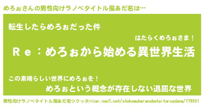 | ヘコむあだ名 | 『めろぉ(笑)』『めろにゅー』 |