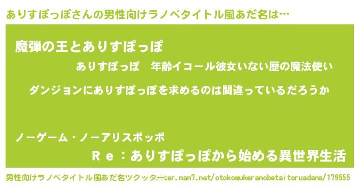 | 意味不明あだ名 | 『とにかく怪しいありすぽっぽ』 |