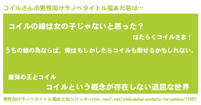 | 胡散臭い通販商品みたいなあだ名 | 『運命の人と巡り会える高級そうな絵画…その名も「コイル」』 |