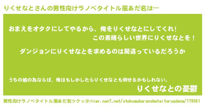 | 女子向けラノベタイトル風あだ名 | 『りくせなとは平凡を望む』 |