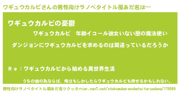 | 女子向けラノベタイトル風あだ名 | 『ワギュウカルビは平凡を望む』 |
