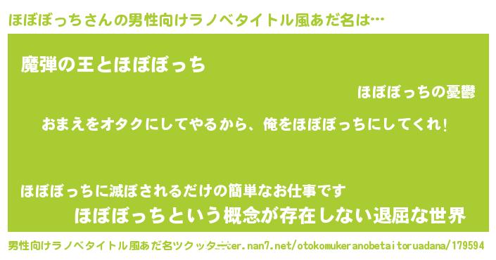 | ヒーロー風カッコイイあだ名 | 『友情の使者ほぼぼっち』『仮面ホボダー』 |