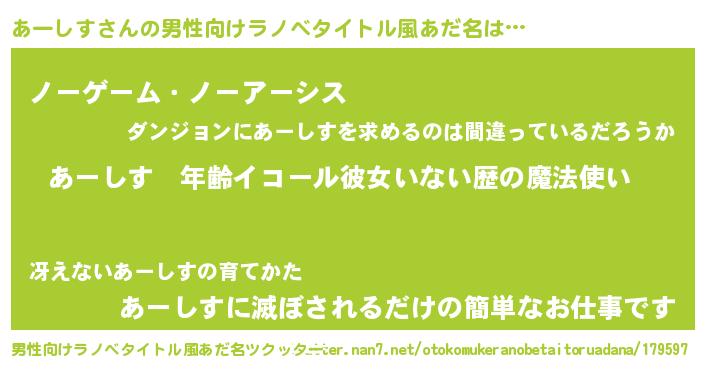 | 伝説のあだ名 | 『救世主となる占い師あーしす』 |