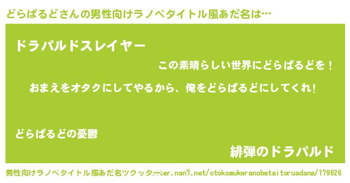 | 女子向けラノベタイトル風あだ名 | 『どらぱるど夫妻のなれそめ』 |