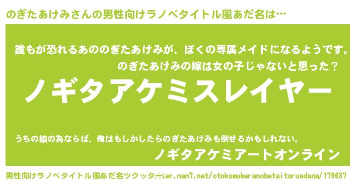 | 肩書あだ名 | 『のぎたあけみ少将』『のぎたあけみ先生』 |