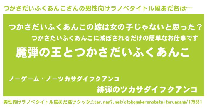 | 意味不明あだ名 | 『住所不定無職つかさだいふくあんこ(43歳)』 |