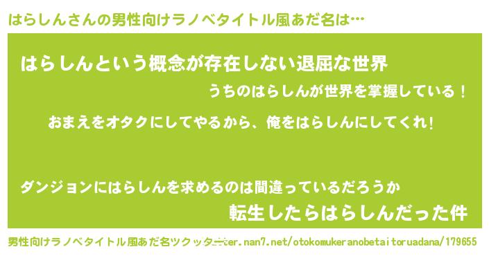 | 意味不明あだ名 | 『眠気覚ましガムはらしん味』 |