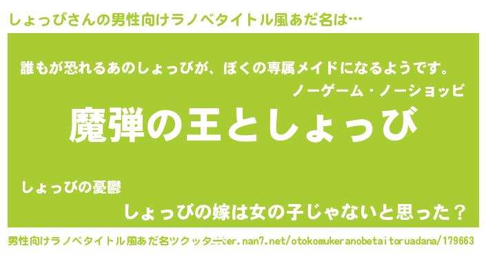 | 意味不明あだ名 | 『住所不定無職しょっび(91歳)』 |