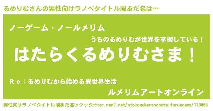 | ヘコむあだ名 | 『るめふぇ~』『るめっ子』 |