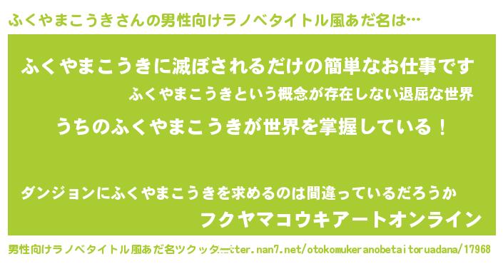 | ヘコむあだ名 | 『ふくもー』『ふくやまこうき(笑)』 |