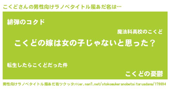 | 女子向けラノベタイトル風あだ名 | 『こくどの卵を拾いまして』 |
