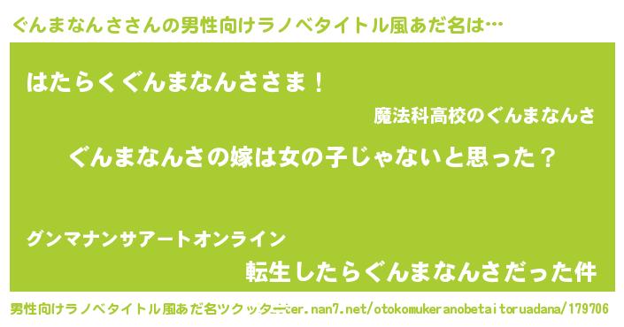 | 女子向けラノベタイトル風あだ名 | 『ぐんまなんさ様がみてる』 |